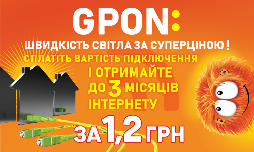 Переходь на GPON всього за 500 грн + 1,20 грн на баланс та отримуй до 3 місяців...